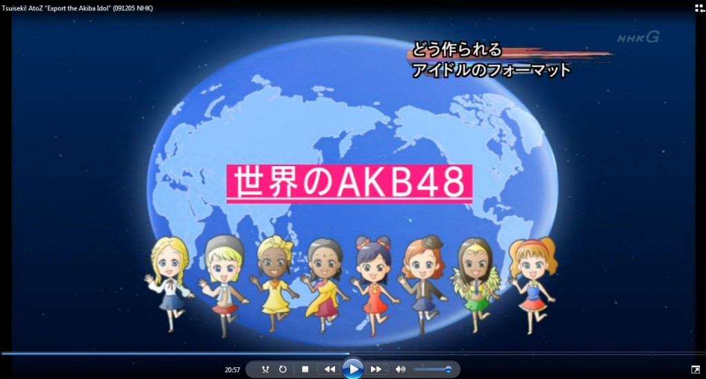 La gráfica de la NHK muestra agrupaciones idol en todo el mundo, tales como «Moscow 48», Pekin 48, Paris 48, Deli 48, Nairobi 48, New York 48, Rio 48, etc.